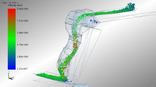 曲線溜槽技術(shù)基于DEM離散元方法,采用三維軟件設(shè)計(jì)和立體建模技術(shù),借助于先進(jìn)的顆粒學(xué)仿真軟件,對(duì)散狀物...